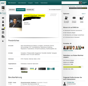 Klicken Sie auf den xing Button und Sie werden mehr Berufliches über mich erfahren.Dies ist eine seriöse Plattform die eine kostenlose Anmeldung erfordert.
